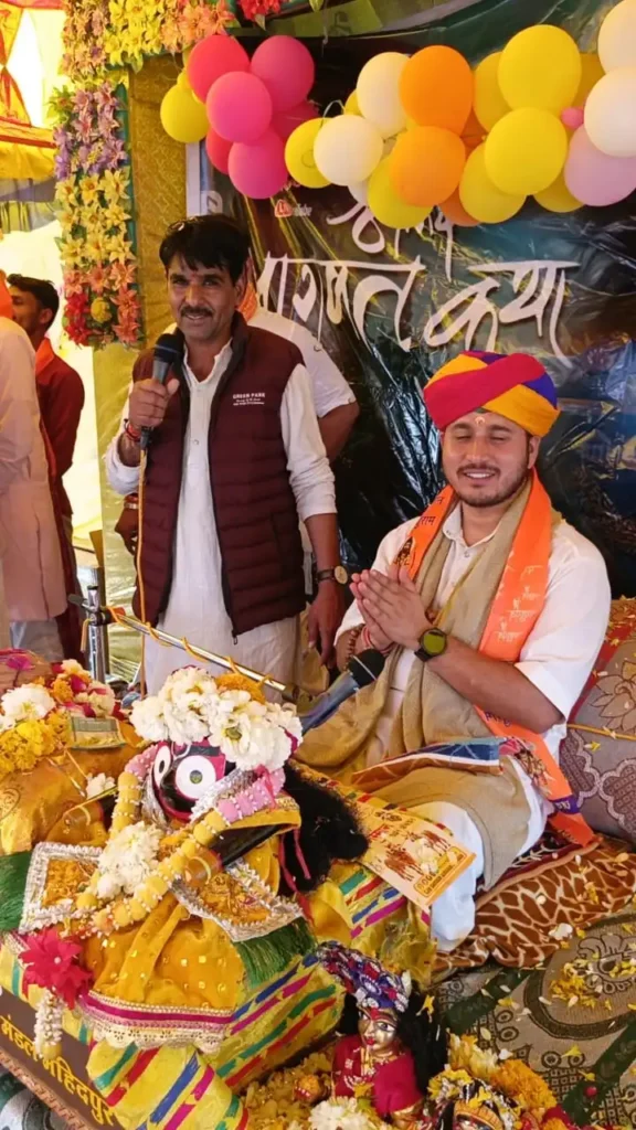 झारड़ा में गुरु कॉलोनी में चल रही श्रीमद् भागवत कथा के पूर्णाहुति के सप्तम दिवस पर भागवत प्रवक्ता पंडित दीपक जी उपाध्याय लसुल्डिया मंसूर के मुखारविंद से श्री कृष्ण और सुदामा के मिलन प्रसंग पर संवाद हुआ एवं भागवत प्रवक्ता के द्वारा कहा गया की प्रत्येक व्यक्ति को गौ सेवा करनी चाहिए गाय को माता मानकर प्रत्येक व्यक्ति को गौ माता को पाल कर अपने घर में रखकर गाय माता की सेवा करनी चाहिए क्योंकि सभी देवता गौ माता की सेवा से प्रसन्न होते हैं एवं सभी देवता गौ माता में ही समर्पित रहते हैं सप्तम दिवस के पूर्णाहुति पर पंडित जगदीश जी जोशी द्वारा कथा स्थल पर पहुंचकर श्री राम कृष्ण महादेव गौशाला लसुल्डिया मंसूर के निर्मित 21000 का चेक गौशाला के निमित्त प्रधान किया एवं 1100 रुपए गुरु कॉलोनी महिला भक्त मंडल झारडा को प्रधान किया कथा समापन पर खेड़ापति हनुमान मंदिर के पुजारी जी प्रदीप बैरागी ने भागवत प्रवक्ता का स्वागत कर आशीर्वाद प्राप्त किया इस अवसर पर जगदीश जोशी जी ने दुपट्टे से श्री खेड़ापति हनुमान मंदिर पुजारी जी का स्वागत किया आयोजन करता महिला भक्त मंडल गुरु कॉलोनी झारड़ा