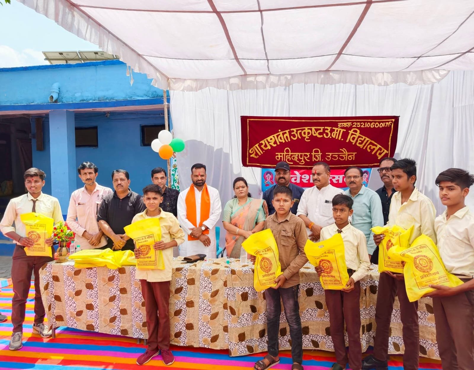 महिदपुर- शा.यशवंत उत्कृष्ट उमावि महिदपुर में प्रवेशोत्सव बड़े ही उत्साह और गरिमामय वातावरण में मनाया। कार्यक्रम के मुख्य अतिथि क्षेत्रीय विधायक माननीय श्री दिनेश जैन “बोस” उपस्थित रहे,विशेष अतिथि जिला पंचायत सदस्य श्री प्रतापसिंह आर्य,नगर मंडल अध्यक्ष एवं पार्षद श्रीमती उमा पांडे, पूर्व नपा.अध्यक्ष एवं वरिष्ठ पत्रकार श्री अरुण बुरड़, शहर कांग्रेस अध्यक्ष श्रीसगीर बैग,श्री मनोहर आंजना, मॉडल स्कूल प्राचार्य श्री रामेश्वर सोनी, पार्षद प्रतिनिधि मो. इकबाल नागोरी, एवं जाकिर मंसूरी, पार्षद श्रीमतीआशा राठौर,श्रीमती नेहा सकलेचा सहित अभिभावकगण भी विशेष रूप से उपस्थित रहे l