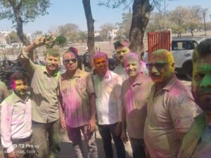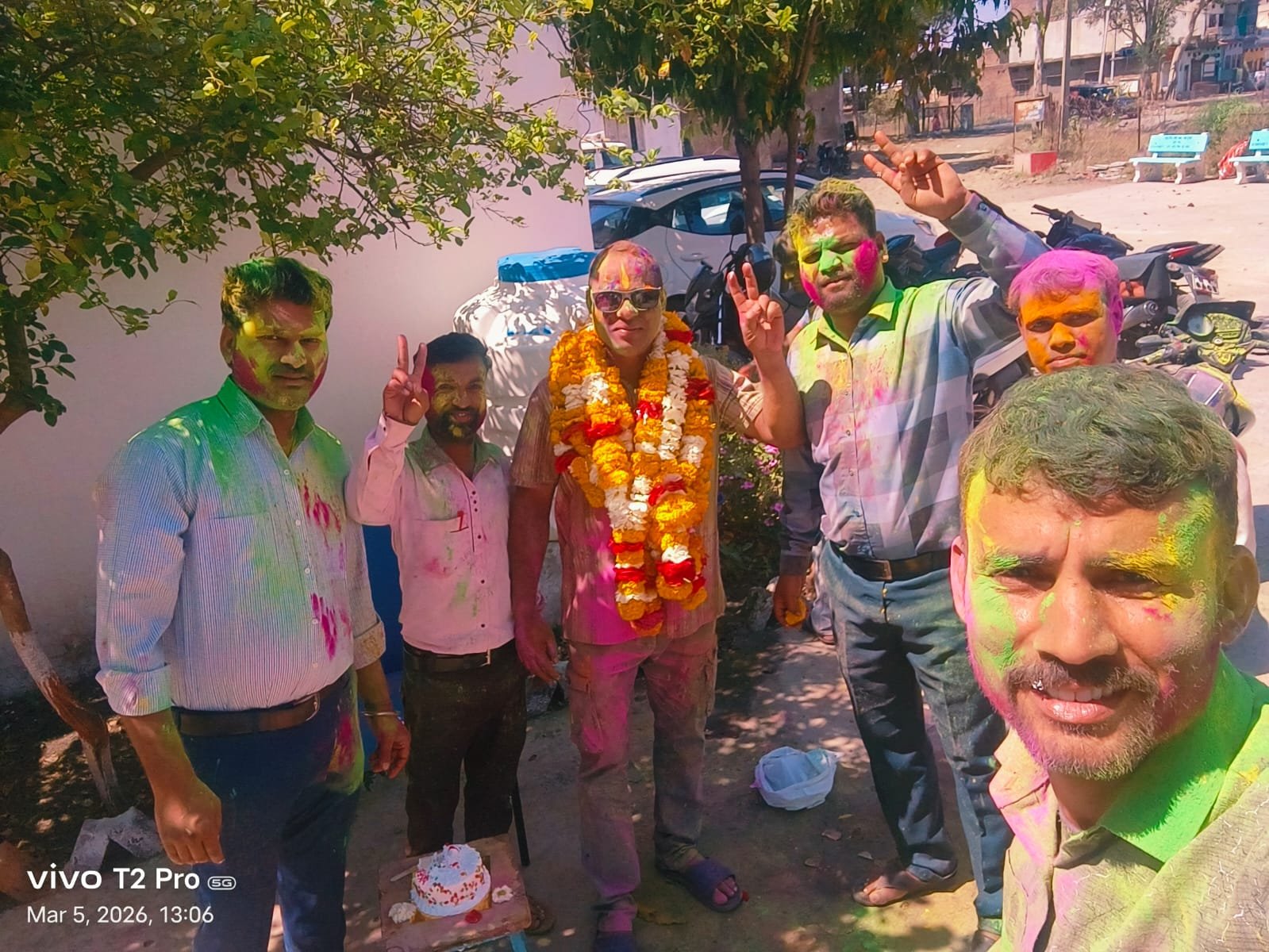 पुलिस-पत्रकार होली मिलन: जन्मदिन के जश्न के बाद थाना प्रभारी श्री आर.एस. भाबोर के नेतृत्व में पुलिस और पत्रकारों ने मिलकर फूलों और गुलाल से होली खेली। इस दौरान पूरा थाना परिसर रंगों से सराबोर नजर आया।