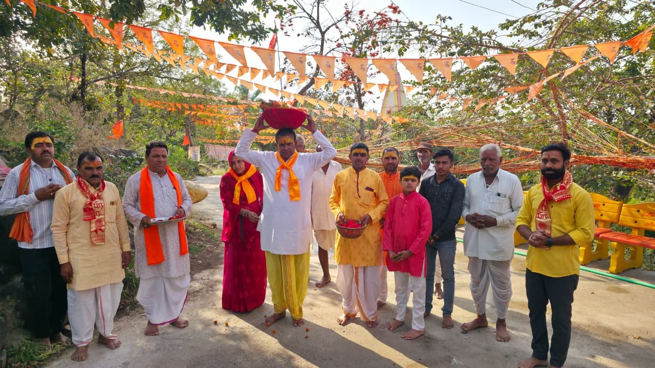 इसके पश्चात् मंदिर के शिखर पर सूर्योदय बेला में ध्वजारोहण तथा महाआरती कर नीम और मिश्री की प्रसादी बांटी गई।